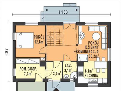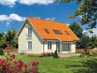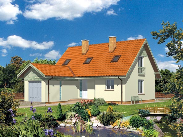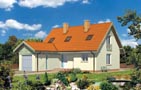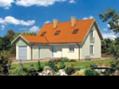 Budynek jednorodzinny parterowy z poddaszem mieszkalnym, niepodpiwniczony. Minimalna szerokość działki: 19,50. Ściany zewnętrzne: gr. 36,5 cm z bloczków YTONG. Strop: FERT. Schody: drewniane. Dach: dwuspadowy o nachyleniu 45 stopni i 30 stopni /nad garażem/, więźba krokwiowo-jętkowa z płatwią kalenicową, krycie dachówką. Poziom kalenicy: 7,65 m od terenu