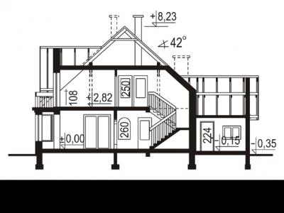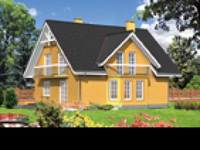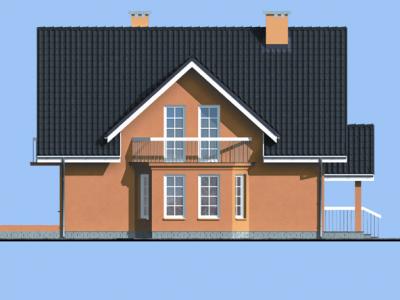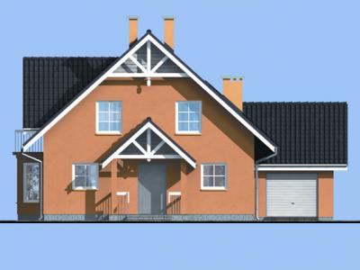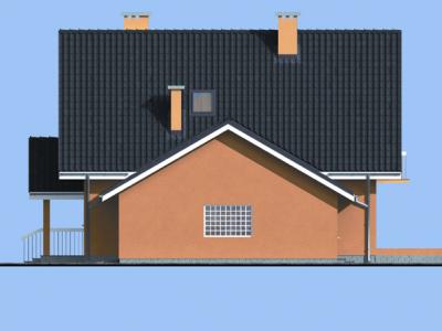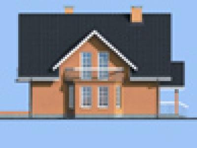 Budynek jednorodzinny parterowy z poddaszem mieszkalnym, niepodpiwniczony. Minimalna szerokość działki: 21,33. Ściany zewnętrzne: gr. 44 cm z pustaków ceramicznych POROTHERM. Strop: żelbetowy. Dach: dwuspadowy o nachyleniu 42 stopni, krycie dachówką ceramiczną KORAMIC. Poziom kalenicy: 8,58 m od terenu. Dodatkowe informacje: zobacz również projekty WB-3945, WB-0072, WB-0044, WB-0045, WB-3905