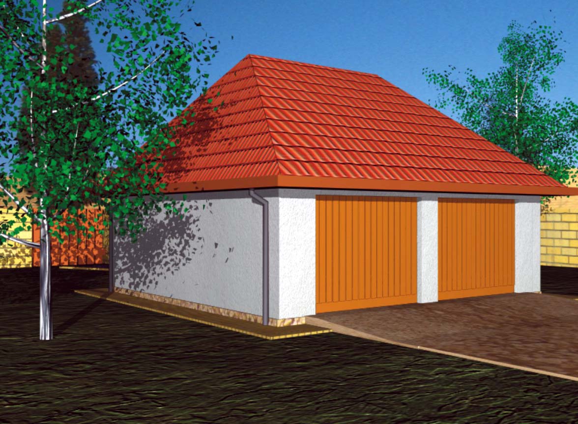 Garaż dwuboksowy z dachem czterospadowym 6,90x7,10 m